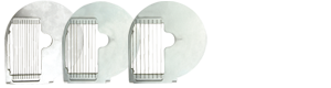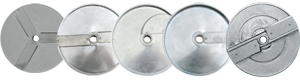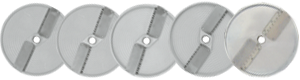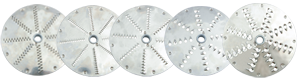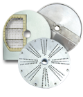 Hier finden Sie eine große Auswahl an Scheiben zum Einsetzen in die Gemüseschneider. Die Scheiben sind in verschiedene Kategorien eingeteilt: Schneidescheiben, Reibescheiben, Stäbchenscheiben, Würfelgitter (verwendbar nur in Verbindung mit einer E-Schneidescheibe, Pommes-Frites-Scheiben (verwendbar auch nur in Kombination mit einer E-Schneidescheibe), sowie Auswurfscheiben.