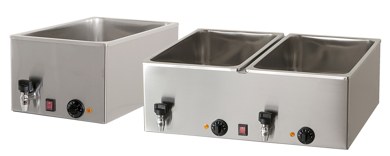 Diese Wasserbäder sind ganzheitlich aus hochwertigem Edelstahl gefertigt. Die V-Ausführungen sind zusätzlich mit einem Ablaßhahn ausgestattet. Die Lieferung erfolgt ohne GN Behälter.