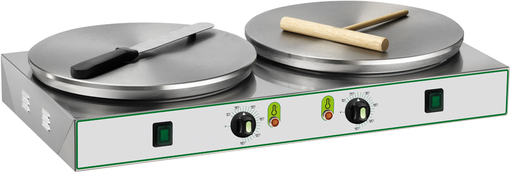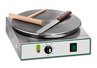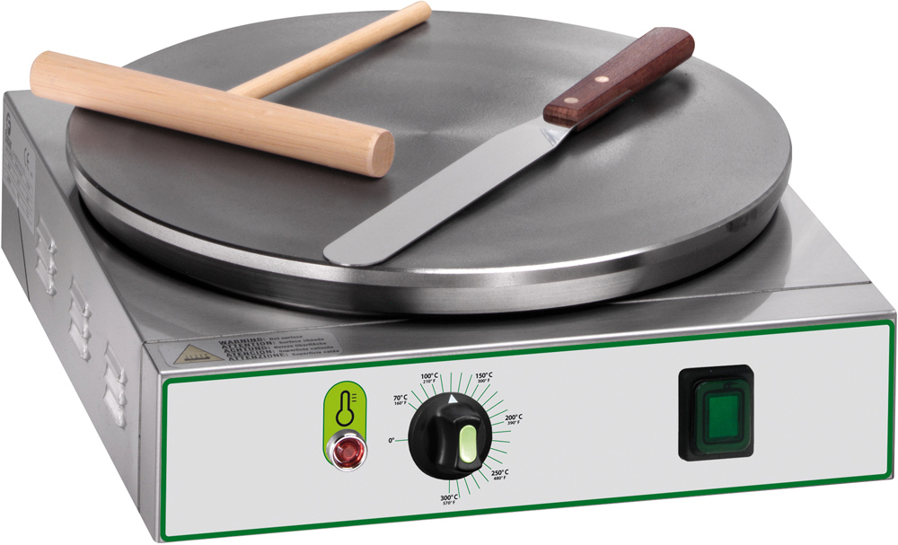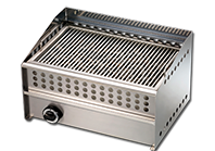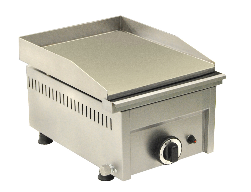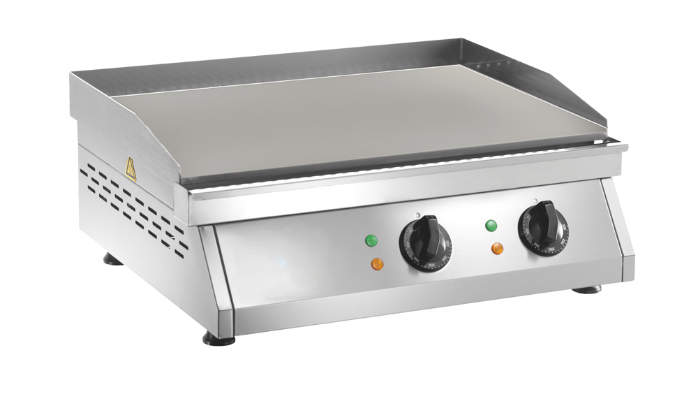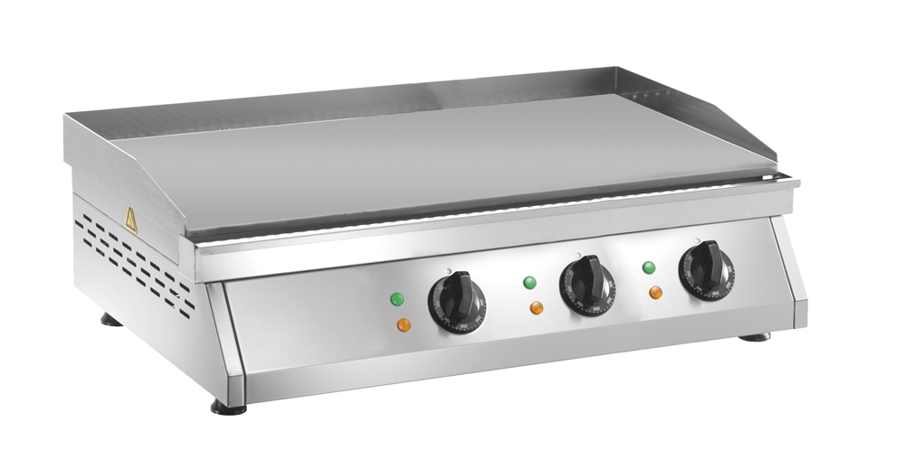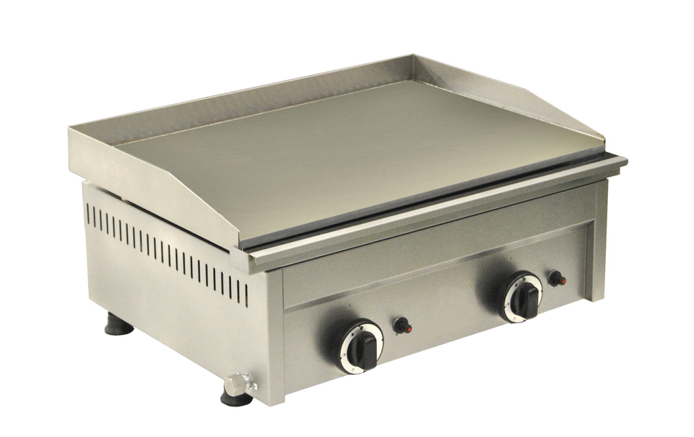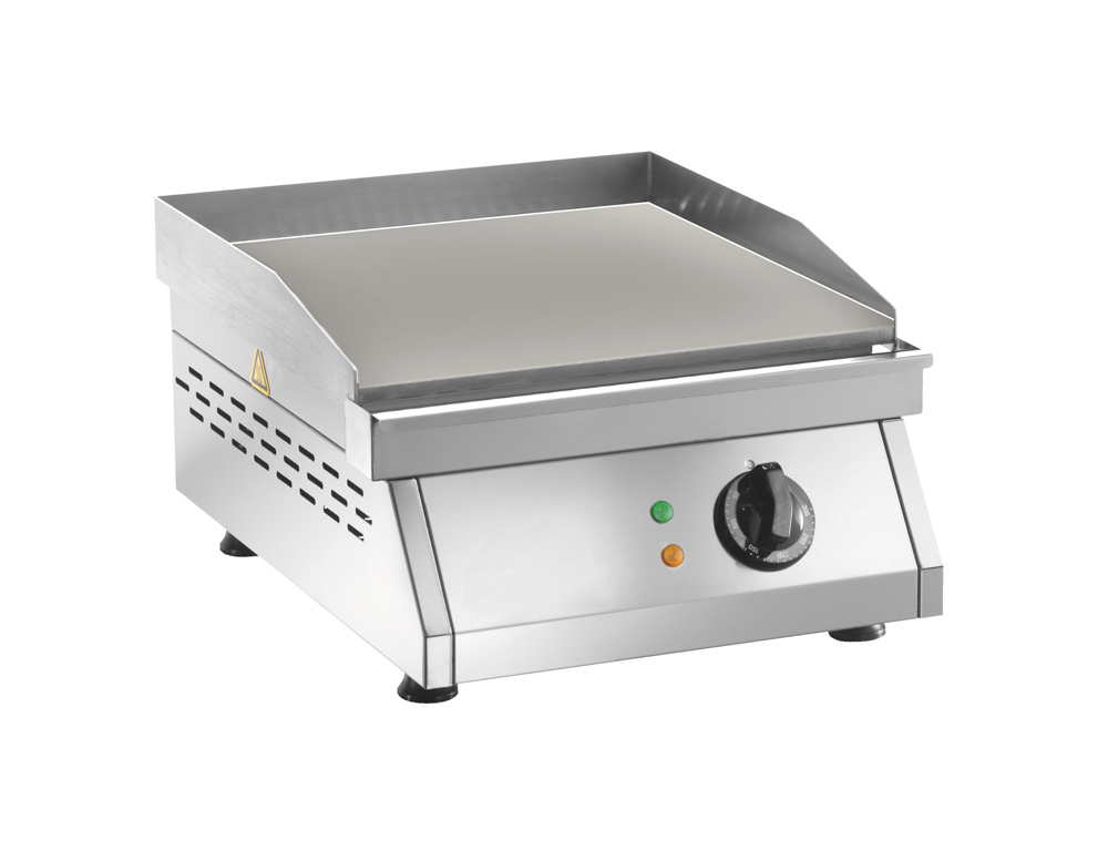 Mit verschiedenen Bratflächen erhältlich: in glattem Stahl (L), glattem Chromstahl (LC), gerilltem Stahl (R), gerilltem Chromstahl (RC), oder beides kombiniert. Thermostat 0-300°C.