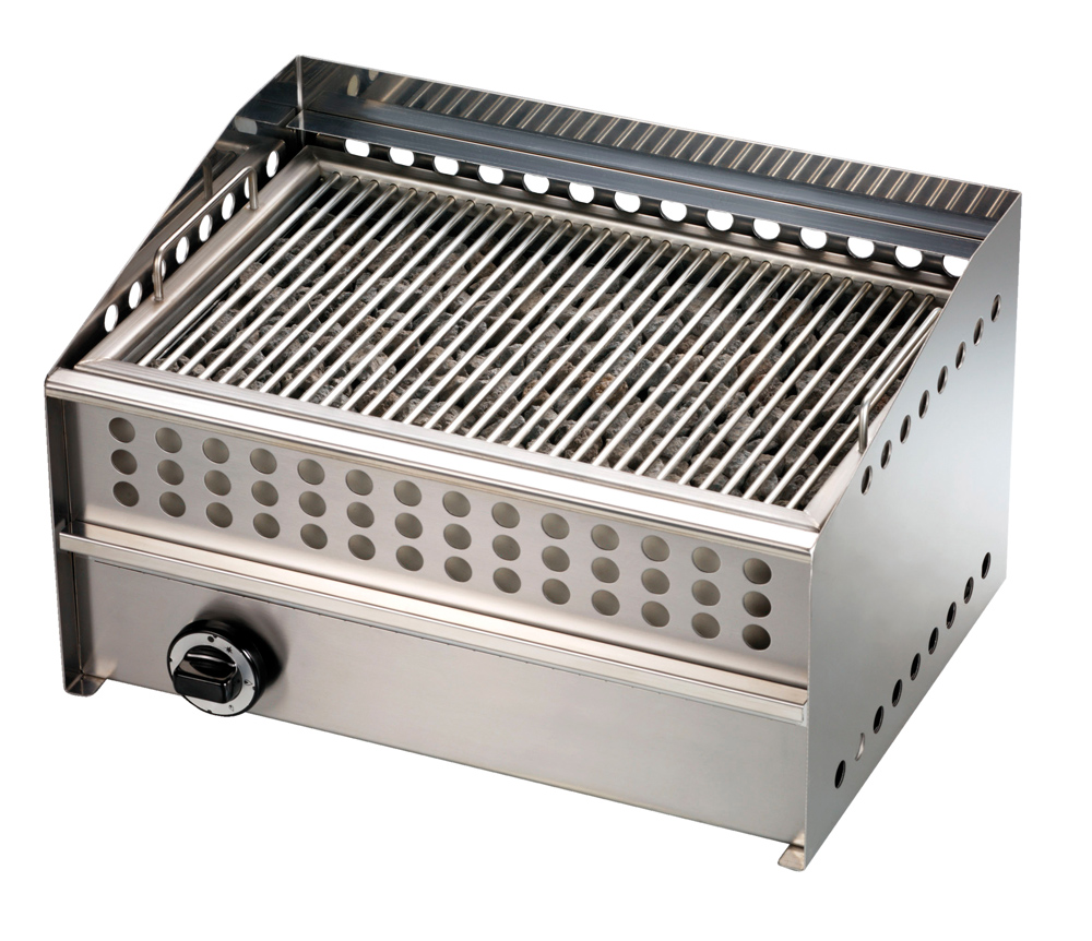 Diese Lavasteingrille sind komplett aus Edelstahl gefertigt und ermöglichen durch die Schräglage des Rostes die Verwendung von zwei Hitzezonen. Die Flammen sind regelbar.