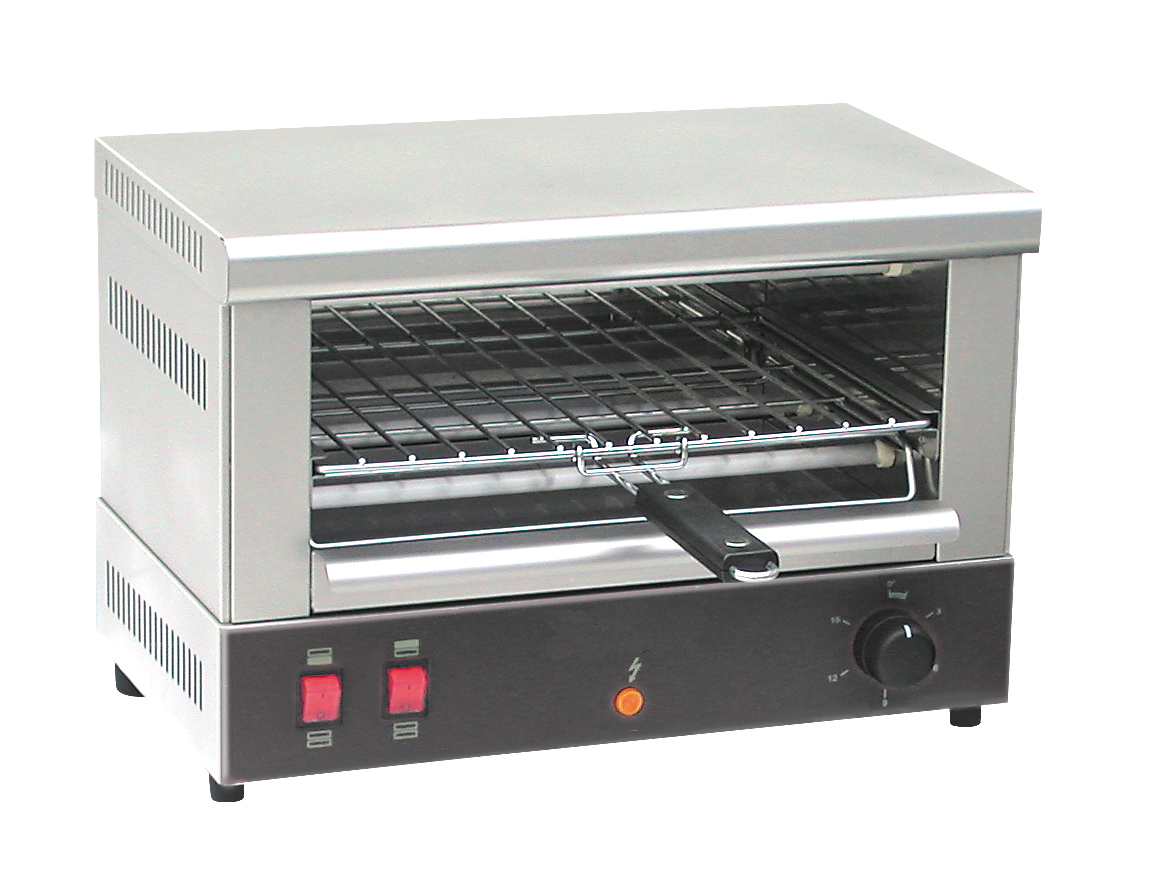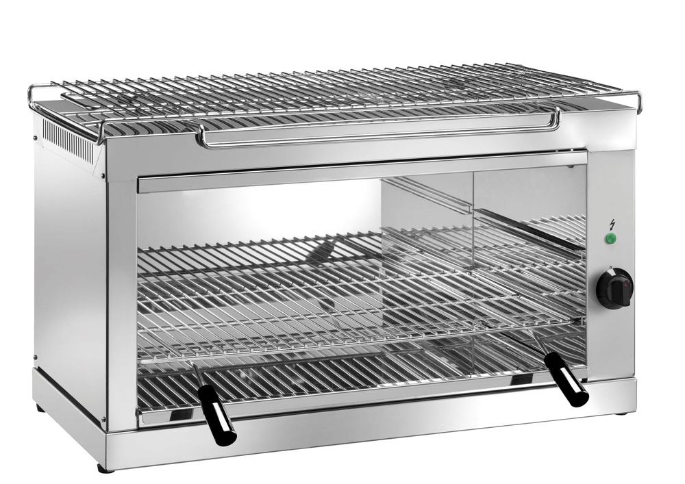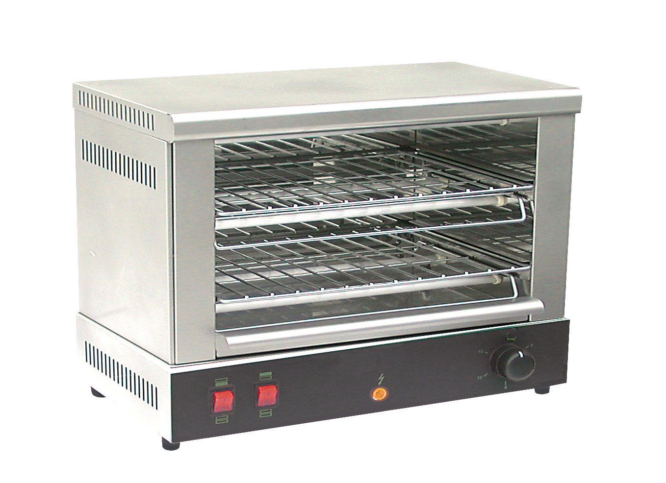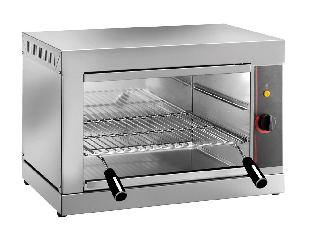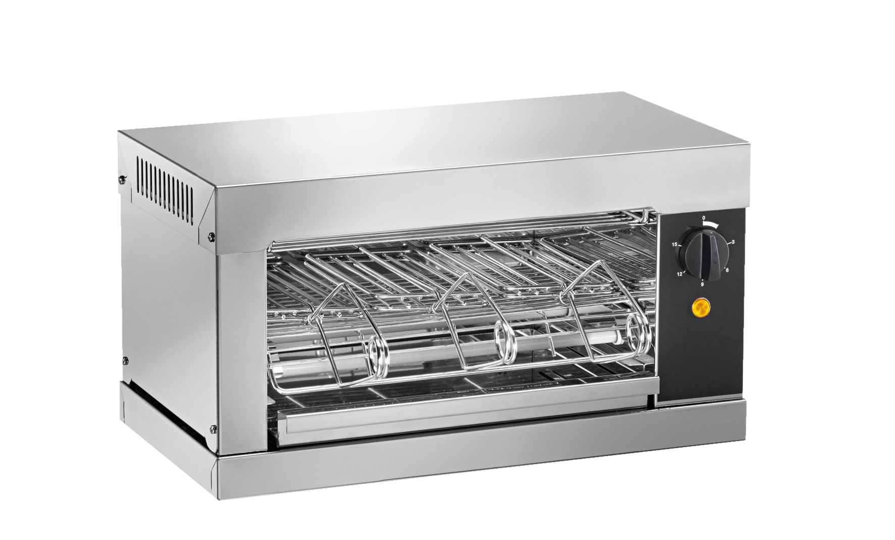 Erstklassige Verarbeitung aus Edelstahl. Rasches Aufheizen des Backraums durch Infrarot Quarzheizkörper.