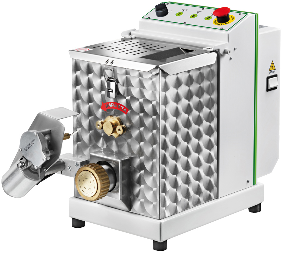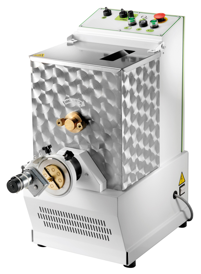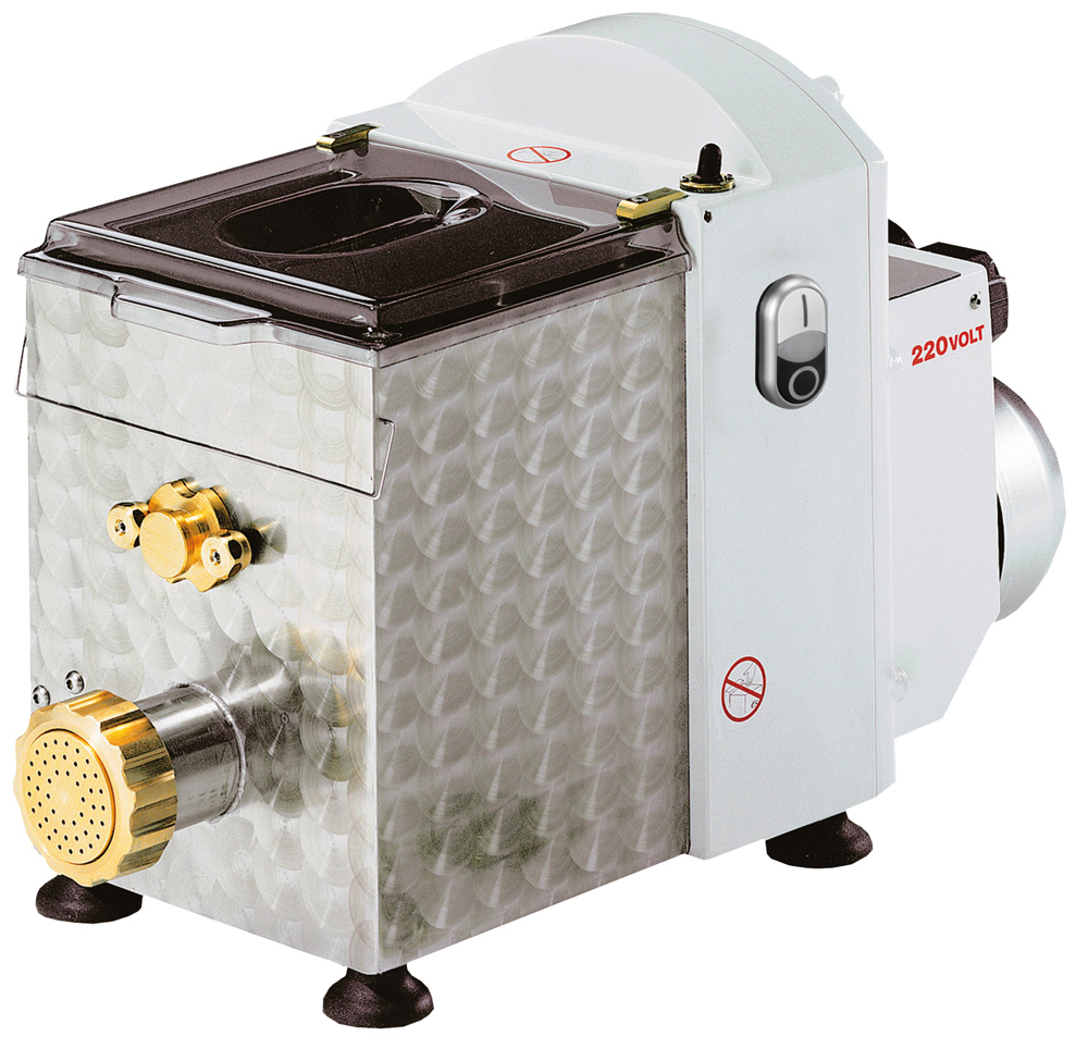 Die Zutaten werden direkt in die Maschine gefüllt und nach kurzer Zeit sind die gewünschten Teigwaren in der gewünschten Art fertig. Dauergeschmierte Kugellager an den beweglichen Bauteilen machen diese Maschine praktisch wartungsfrei. Alle Teile der Maschine, die mit dem Teig in Berührung kommen sind aus Edelstahl gefertigt.