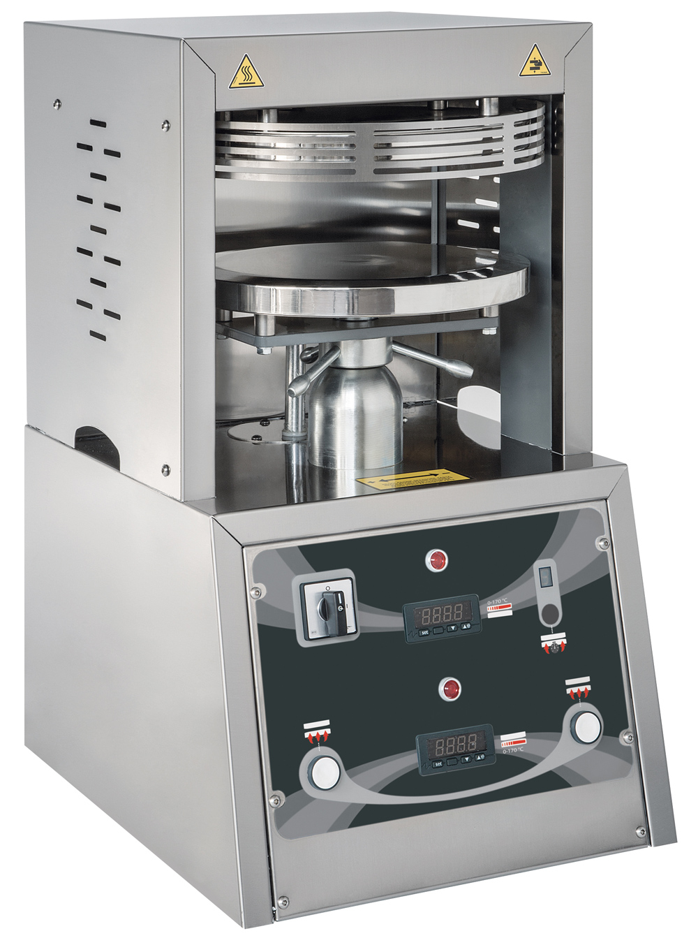 Ideale Maschine um Pizzateigballen schnell und einfach in die gewünschte Größe zu pressen. Dank des speziellen Presstellers wird auch der traditionelle Rand des Pizzabodens geformt. Durch die separate Temperatureinstellung des Tellers lassen sich die Böden schnell und vor allem gleichmäßig formen. Eine enorme Arbeitserleichterung gerade in Stoßzeiten.
