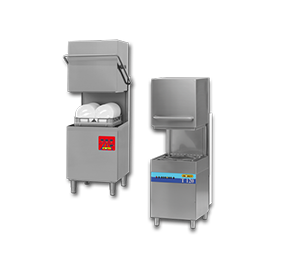 Haubenspülmaschinen garantieren ergonomische Vielseitigkeit. Durch programmierbare Spülgänge und das leichte Öffnen der Hauben wird die Effizienz enorm verbessert. Inklusiv Klarspülmitteldosierpumpe & Reinigungsmittteldosierpumpe.