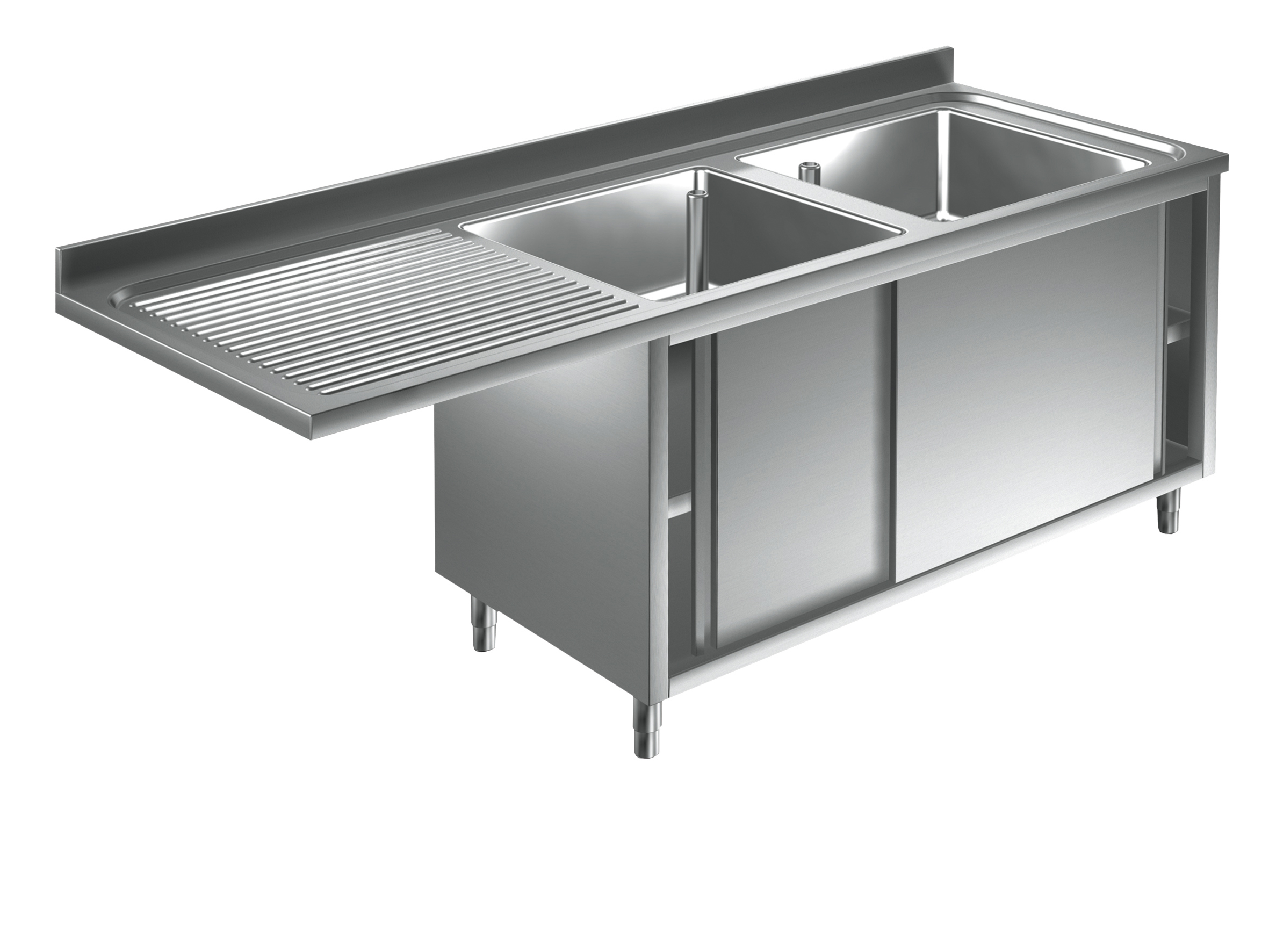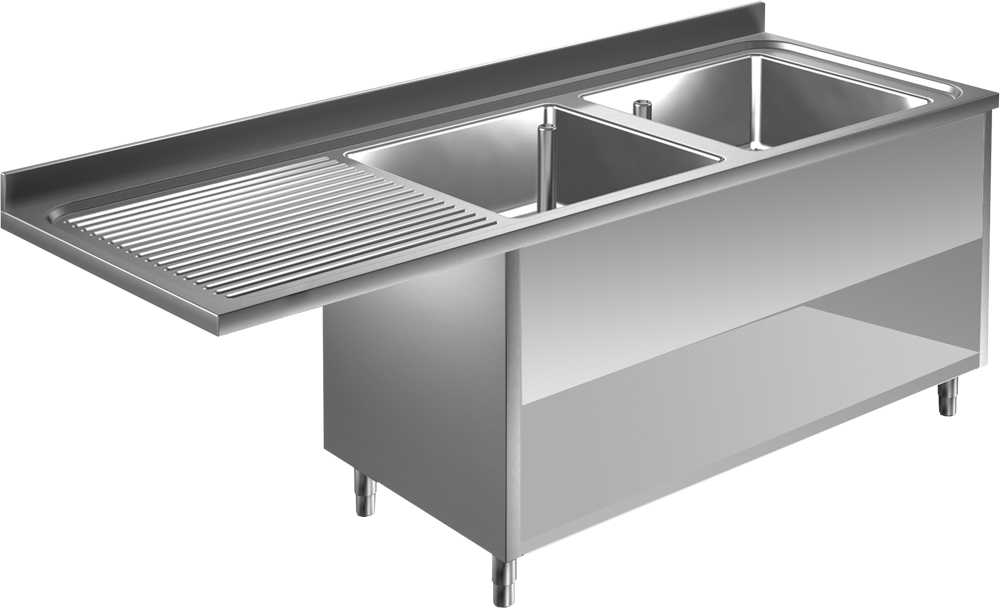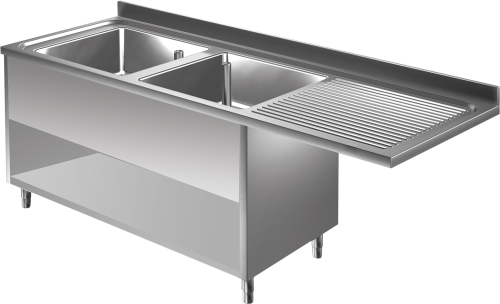 Abtropffläche wahlweise auf linker oder rechter Seite. Auch mit großen Becken verfügbar.
