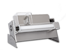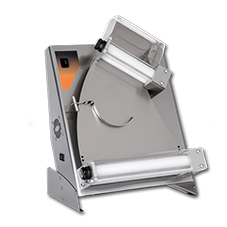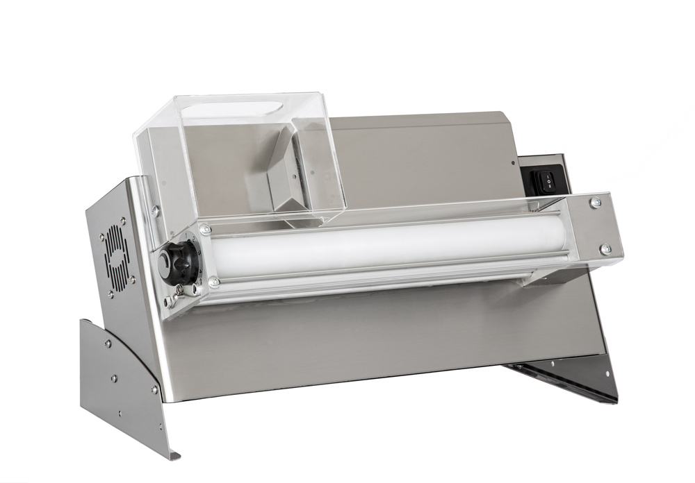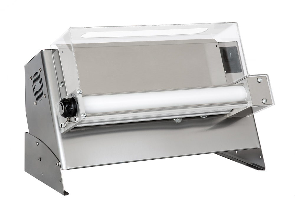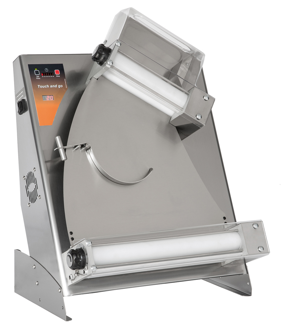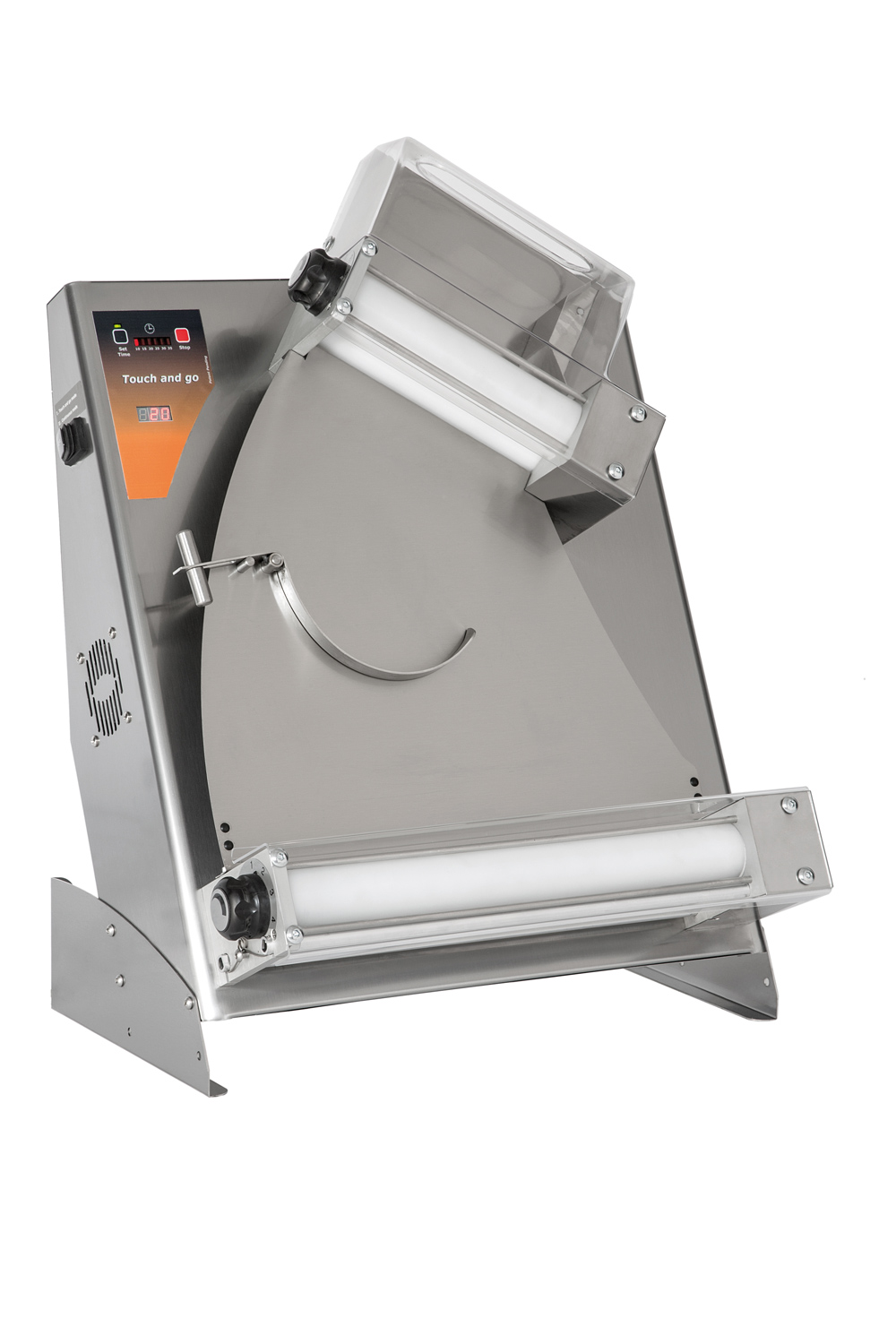 Der Abstand der Rolle läßt sich mühelos regulieren und rastet automatisch bei der gewünschten Teigstärke ein. Alle Modelle können mit einem Fußpedal nachgerüstet werden.